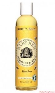 Dầu tắm gội Burt’s Bee không gây cay mắt bé khi sử dụng, an toàn tuyệt đối với bé.