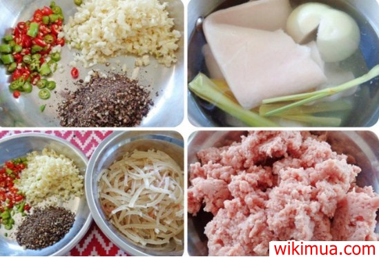 Chúng ta sơ chế thịt lợn và bì trước. Đối với thit lợn chúng ta có thể mua thịt vai, có pha chút mỡ để xay được nhuyễn. Thái thành miếng nhỏ sau đó để trong tủ lạnh khoảng 1 tiếng đồng hồ. Khi thịt có độ lạnh chúng ta sẽ cho vào máy xay để xay thành giò sống. Nếu muốn giò càng xay càng nhuyễn chúng ta có thể cho chút đá bào vào xay cùng nhé.
