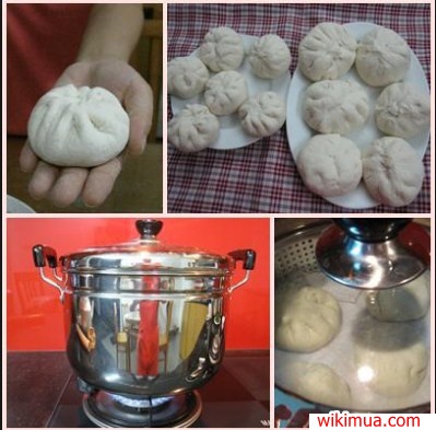 Nặn vỏ bánh: Dùng một gậy lăn bánh, lăn tạo hình bánh bao được đẹp, mỗi bánh chúng ta cho 1 nhân vào, lăn tạo hình tùy theo sở thích của từng người, nếu có trẻ con chúng ta có thể tạo hình sinh động hơn 1 chút.