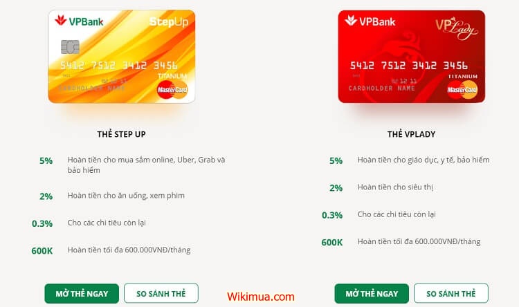 Thẻ tín dụng hoàn tiền VPLady MasterCard và VPBank StepUp