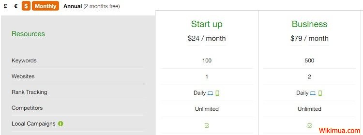 SEOmonitor có mức phí khá đắt, tương tự như các dịch vụ Cloud khác giúp bạn theo dõi và kiểm tra thứ hạng từ khóa hàng ngày. Sử dụng Coupon dưới đây, bạn sẽ được miễn phí 1 năm gói dịch vụ Startup ($288). Gói này cho phép bạn theo dõi 1 Website và kiểm tra thứ hạng của 100 từ khóa.