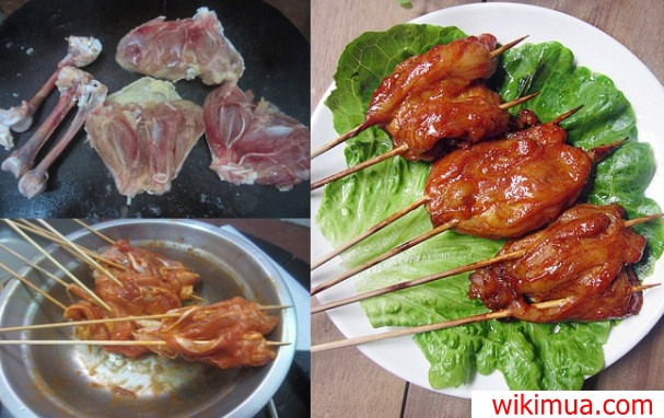 Nếu không nướng bằng lò nướng thì chúng ta sử dụng than hoa nướng. Cho than hoa vào bếp rồi kẹp đùi vào những xiên nướng, lật đi lật lại cho thịt nướng vàng ươm. Trong quá trình nướng chúng ta lật nhanh tay và phết mật ong để thịt không bị cháy.