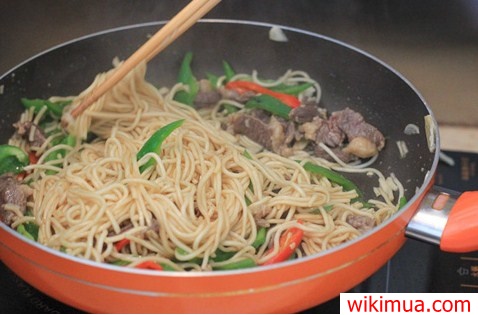 Bước 3: Xào mỳ bò rau củ quả thập cẩm