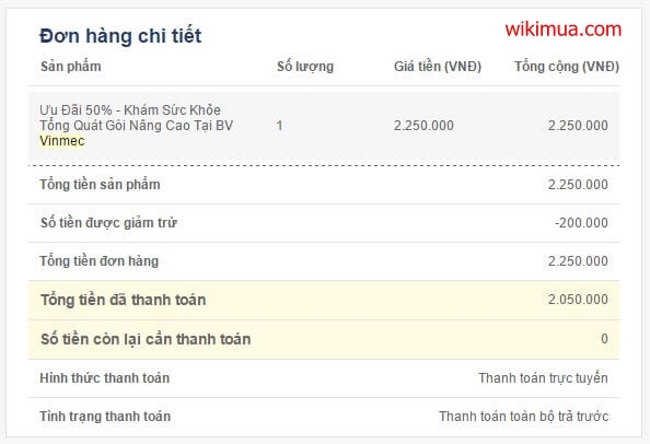Bạn lưu ý là ngoài chương trình giảm giá 50% một số gói khám tổng quát thì bạn cũng có thể sử dụng Mã giảm giá Adayroi để được giảm thêm nữa khi cần mua Voucher khám sức khỏe nhé. Như gói khám Tổng quát nâng cao của Vinmec dưới đây, mình mua với giá chỉ 2 triệu VNĐ.