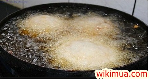 Dầu sôi, chúng ta cho gà vào , dùng muôi có cán dài khi xôi vàng chúng ta lật lại mặt khác, Xôi đã chín vàng đều thì gà đã chín, vì lúc trước chúng ta đã hấp gà vừa chín tới rồi.