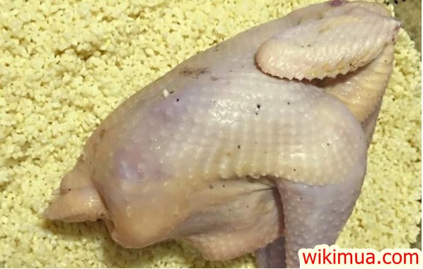 Còn không khi bắt gà chúng ta chuẩn bị 1 nồi nước sôi, rồi thịt gà,phần nội tạng chúng ta không lấy, có thể để chế biến món khác. Chúng ta không nên mổ ra phanh mà nên mổ rút ruột để con gà còn hình dáng như ban đầu, khi nấu cũng hấp dẫn và dễ bọc xôi hơn.