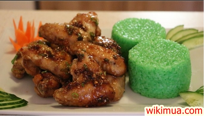 Cánh gà chiên nước mắm và xôi lá dứa nước cốt dừa